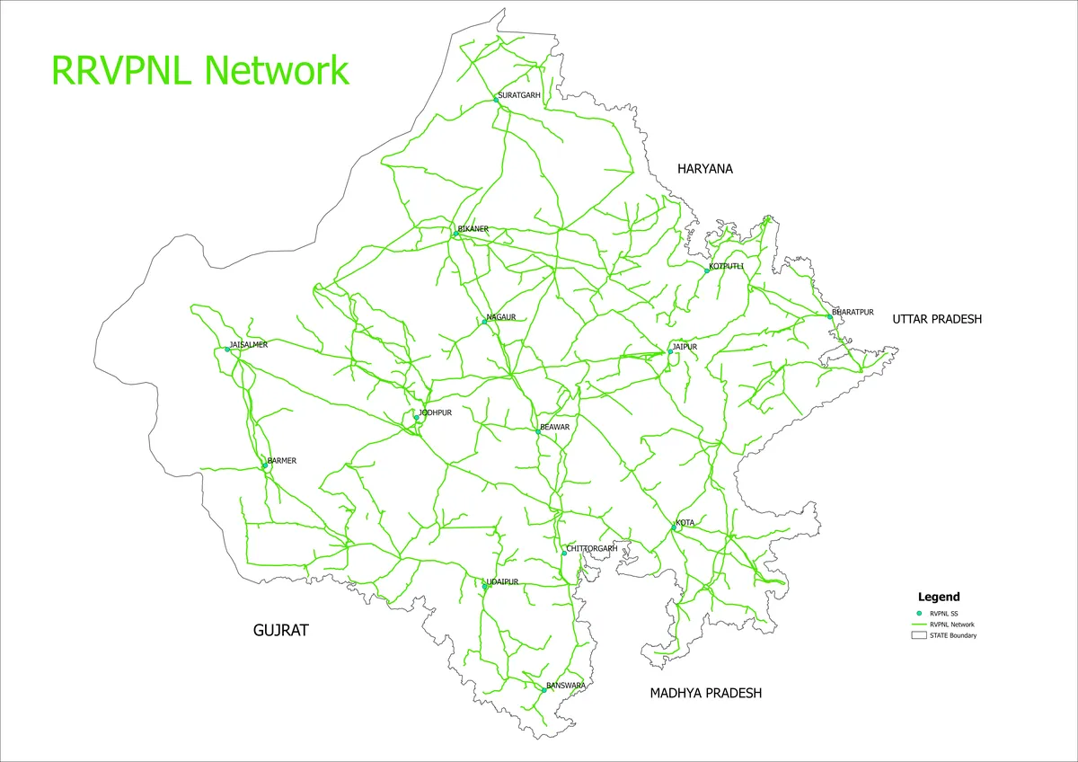 17,000 km OPGW network laid across transmission lines covering major cities and industrial hubs including Jaipur, Jaisalmer, Jodhpur, Ajmer, Kota, Bhiwadi, Bharatpur, Suratgarh, Bikaner, Udaipur, and more.