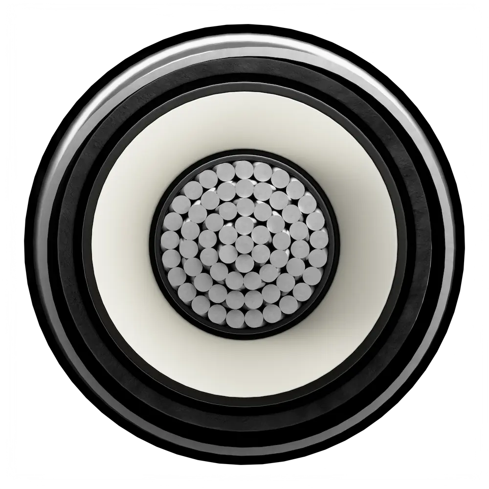 A high-performance power cable with compacted circular or segmental copper/aluminium conductor, XLPE insulation, semi-conductive screening, corrugated aluminium sheath, and outer jacket ensuring superior performance, protection, and long-lasting reliability in power transmission systems.